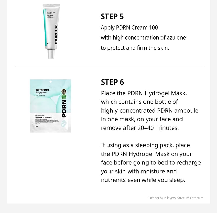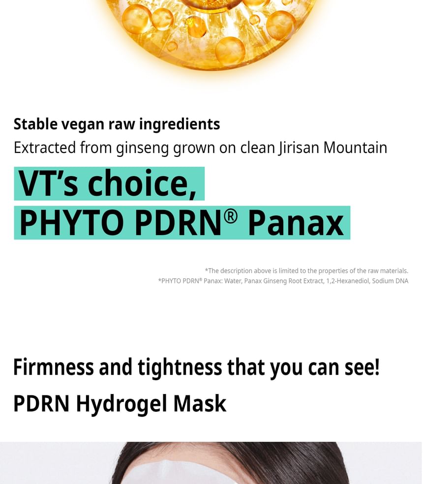 Healthy and Revitalized skin: Revitalize your skin with the VT Cosmetics PDRN Hydrogel Mask, a new generation hydrogel sheet mask designed to deliver intense benefits.