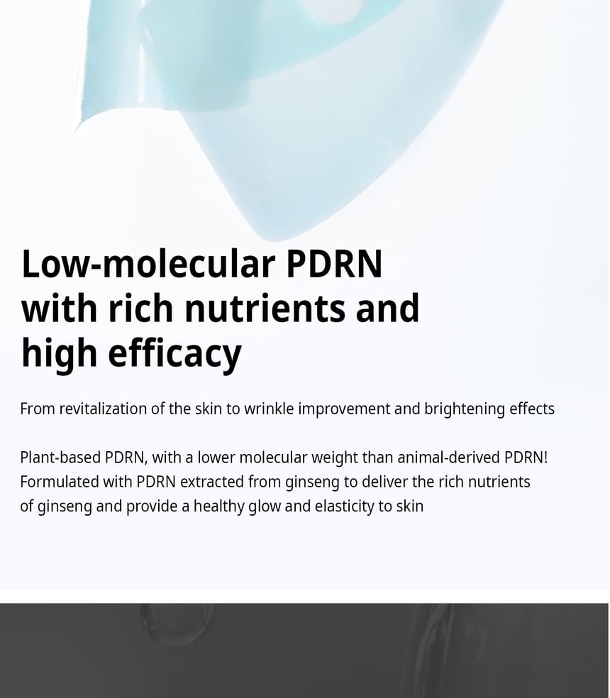 Vegan PDRN:Infused with plant-based PDRN extracted from wild ginseng, along with Squalane and Panthenol, this mask enhances skin firmness and elasticity while fortifying the skin barrier.