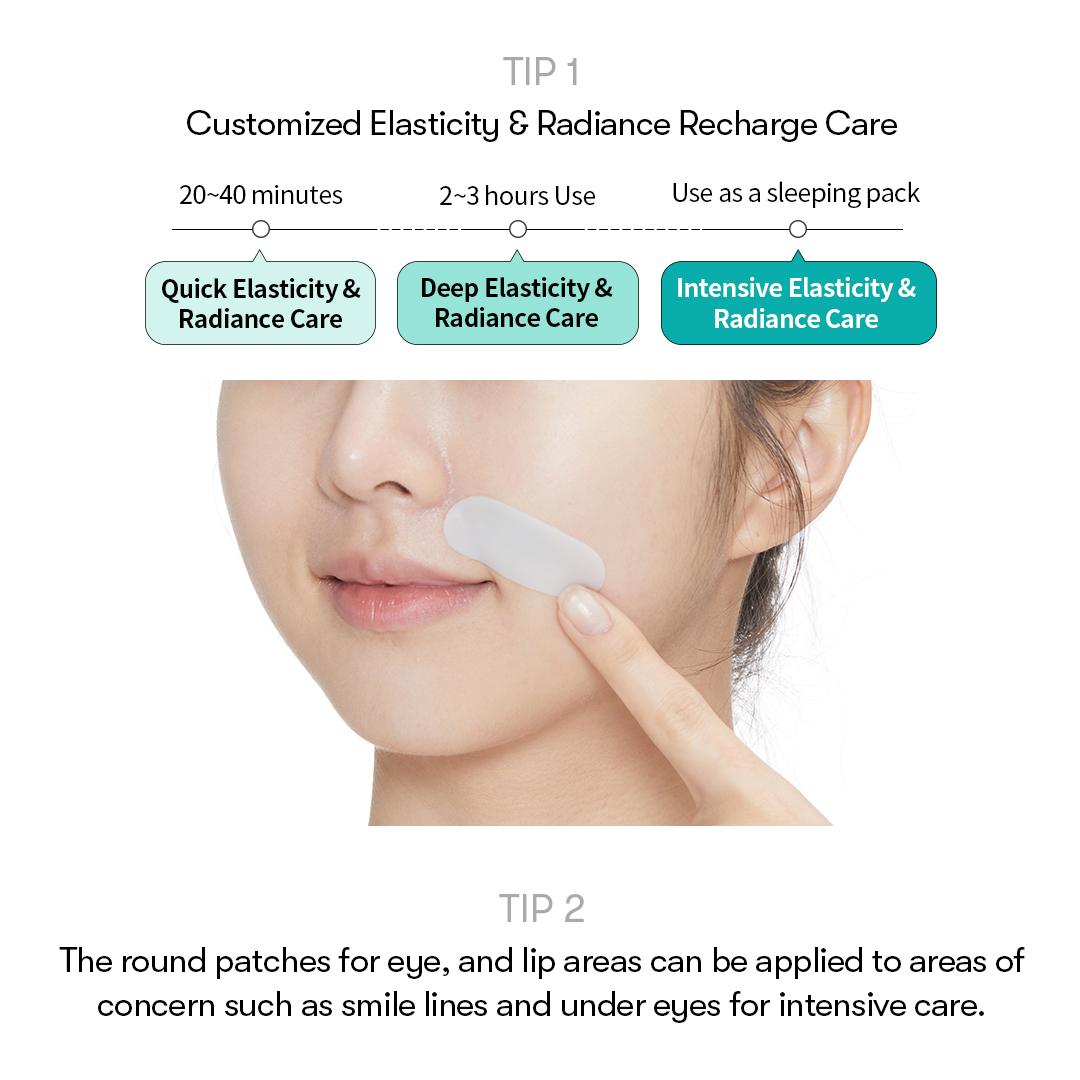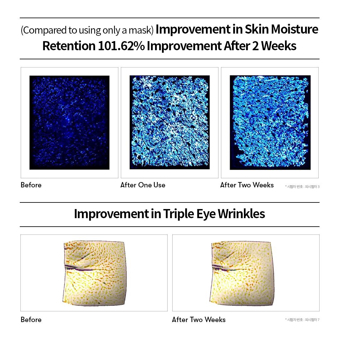 2. After Step 1 is fully absorbed, take out Step 2 hydrogel mask. Remove the backing films and place the lower half around the mouth and the upper half around the eyes.
